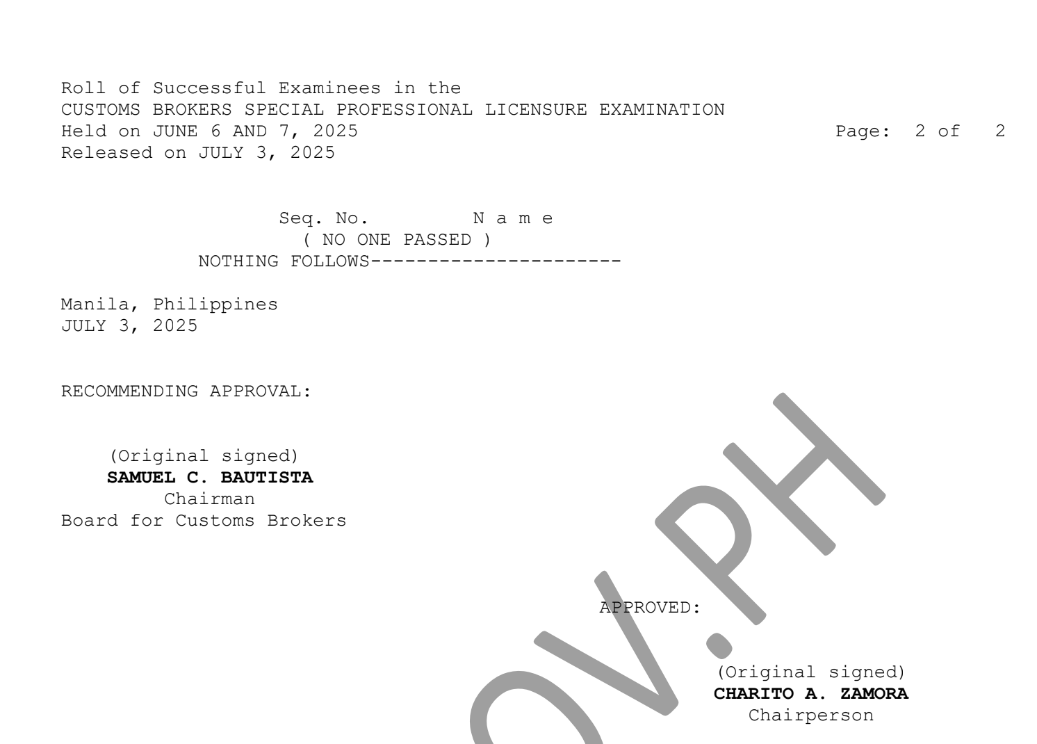 PRC announced that no one passed the exams.
