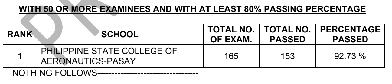 The Professional Regulation Commission (PRC) announces the summary performance of schools and the list of top-performing schools in the December 2025 Aeronautical Engineer Licensure Exam (AELE) two (2) working days after the exams.